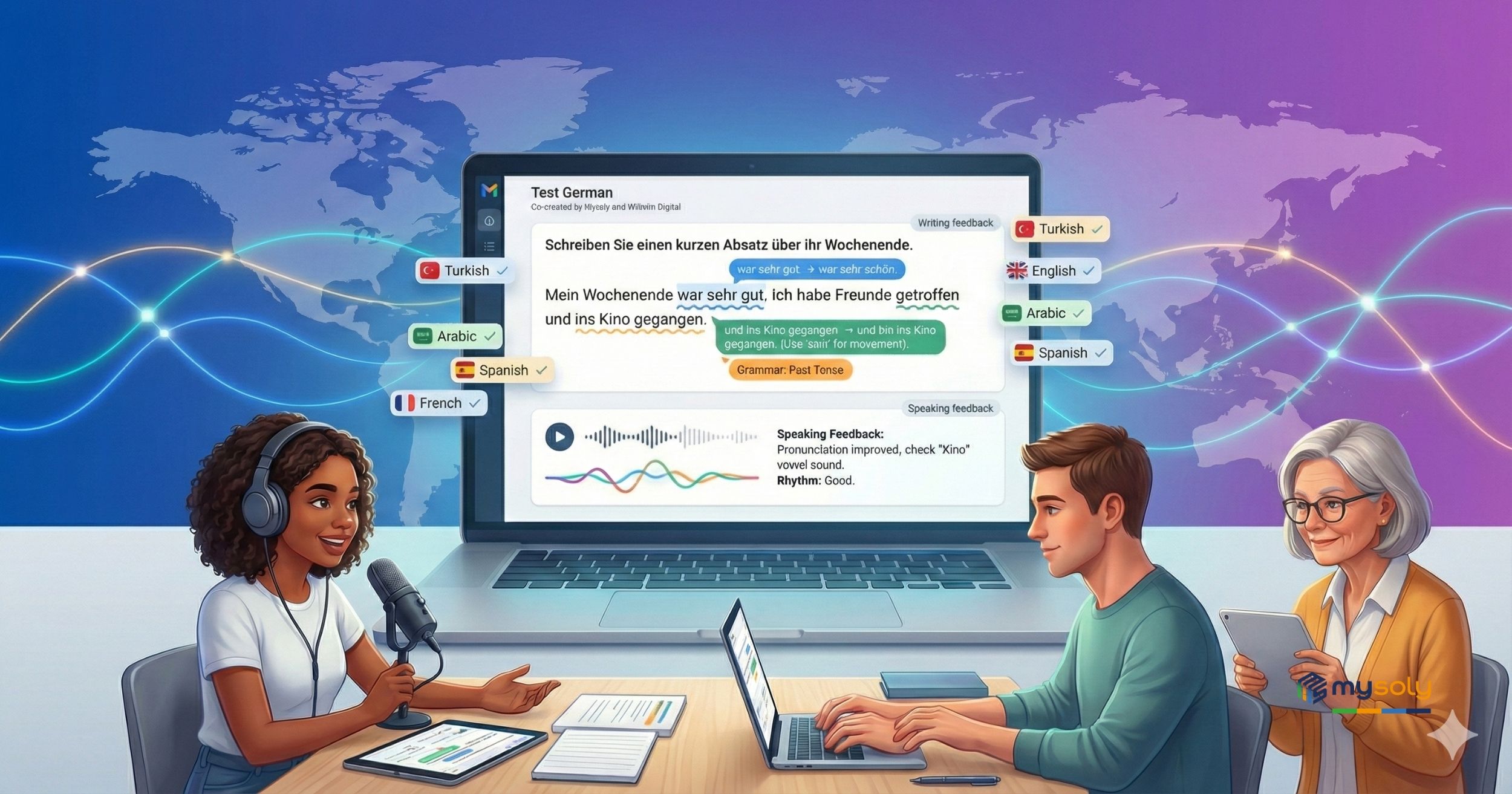 At Mysoly, our mission is to make high-quality learning truly borderless, and multilingual AI feedback systems are at the heart of that vision. Together with Wilhelm Digital, we’ve brought this mission to life in Test German, a joint product designed specifically for high-stakes German exams. Powered by advanced multilingual AI, Test German delivers exceptionally detailed, exam-oriented feedback—especially in speaking and writing, where learners need the most support. Unlike many traditional platforms that stop at generic corrections, Test German explains mistakes clearly, in the learner’s own language, and shows exactly how to improve. United by a shared commitment to accessible, inclusive education, Mysoly and Wilhelm Digital are setting a new standard for how learners prepare for Goethe, telc, and TestDaF—making effective, confidence-building exam preparation possible for everyone, no matter where they come from.